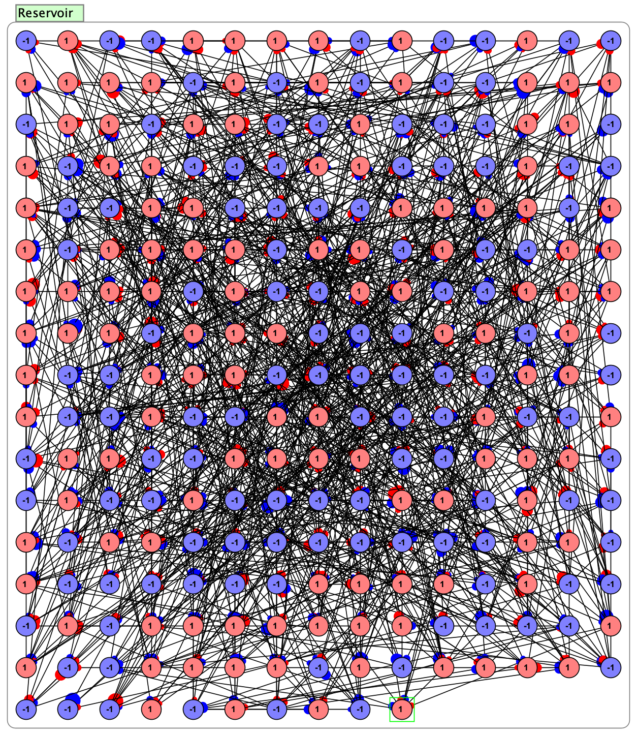 Figure 1. Diagram of the binary reservoir model in Simbrain. Model parameters were based on Bertschinger, N., Natschläger, T., & Legenstein, R. (2004).