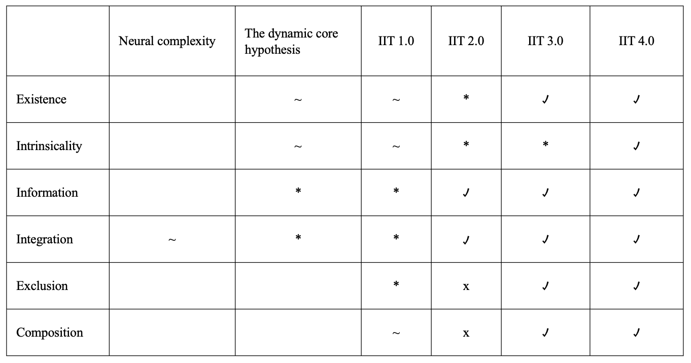 Figure 1. The evolution of IIT's axioms.